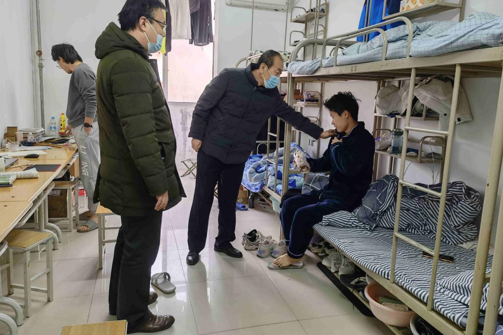 走访中,张双琦和姜鑫与同学们愉快交谈,悉心询问了同学们在封校期间的身体状况以及学习、生活中存在的问题,并叮嘱同学们做好自我防护的同时要严格遵守疫情防控期间各项校园管理规定,不聚集,不传谣,配合学校打赢这场疫情防控阻击战!