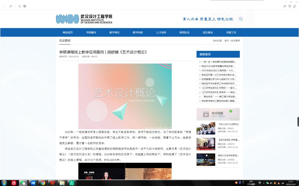 【艺术与设计学院】艺术与设计学院于1月7日组织开展了主题为“强化线上教学管理,深化教学改革,全面提升线上教学质量”的线上教研活动,各教研室专兼职教师参加此次活动。各教研室通过腾讯会议在线举行活动,教师就线上课堂管理、课程教学内容优化、授课形式创新、教学环节组织实施及如何多途径提升课堂吸引力等方面提出思考、分享经验。数字媒体教研室就如何开展好软件课程的线上实操环节进行了充分讨论;艺术设计教研室通过引进和分享校外优秀线上教学案例积累线上教学新动能;公共艺术教研室针对《大学生艺术鉴赏与实践》课程中如何有效融入思政元素进行了深入的探讨。分院院长管阳强调随着线上教学的深入,教师一方面要树立起标准意识、质量意识、互动意识,根据课程本身的性质及要求摸索出一套行之有效的线上教学方法,另一方面还要强化育人意识及课程思政理念,将疫情防控中涌现出的典型案例及元素巧妙融入专业课教学中,引导青年学生增强“四个意识”,坚定“四个自信”,做到“两个维护”。