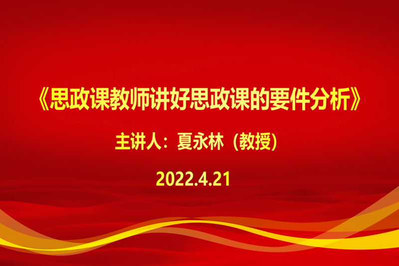 2022年4月21日下午,马院特邀西安电子科技大学马克思主义学院夏永林教授在线开展《思政课教师讲好思政课的要件分析》专题讲座,马院全体专兼职教师通过线上线下相结合的方式参加了本次学习,讲座由马克思主义学院院长吴娟主持。