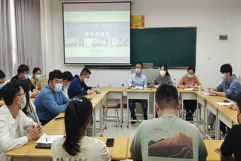 依据学校《关于开展2021-2022学年第二学期中期教学检查工作的通知》精神要求,为了了解疫情防控期间学生思想、学习、生活状态变化,听取师生在教学、学习等方面的合理诉求与意见,化学工程学院先后组织了两场师生座谈会。