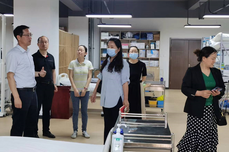 会上,严长远首先对李囡一行的到来表示热烈欢迎,并简要介绍了学校的发展情况,并从经济管理学院专业设置、校企合作、产教融合、就业前景等方面进行了介绍。谈笑老师从专业人才需求状况与发展趋势、职业素质、就业岗位、知识技能、人才培养模式等方面对智慧健康养老服务与管理专业的建设情况作了详细的介绍。李囡介绍了西安医学高等专科学校在智慧健康养老服务与管理专业建设方面的一些思路和想法。最后,双方教师对该专业建设进行了深入交流,并一起参观了智慧健康养老实训基地。