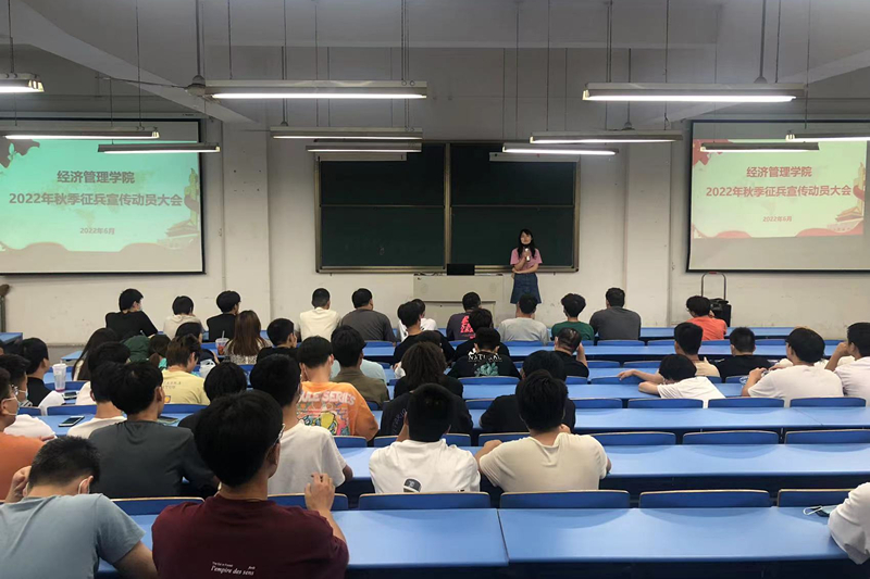 为认真贯彻习近平总书记关于加强和改进兵役工作的重要指示精神,加强我校学生对参军入伍政策的了解,激发大学生应征入伍的积极性,鼓励更多大学生应征入伍,2022年6月13日下午,经济管理学生开展了2022年秋季征兵宣传动员大会。