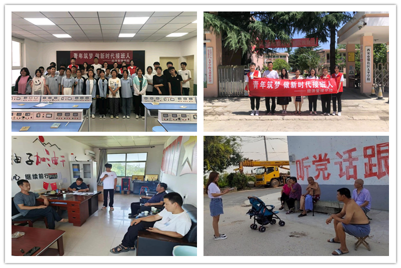 2022年6月28日、8月2日、3日团员分别赴西安市鄠邑区太平学校、陕西咸阳泾阳县兴隆镇太和村、延安市洛川县石头镇石头街村开展“百年薪火,青年筑梦,做新时代接班人”活动。带领广大乡村干部、村民、青少年学生学习了习近平总书记在庆祝中国共产主义青年团成立100周年大会上的重要讲话精神,回顾了党百年奋斗的辉煌成就和历史意义,引导青年学生增进对习近平总书记的情感认同和行动追随。