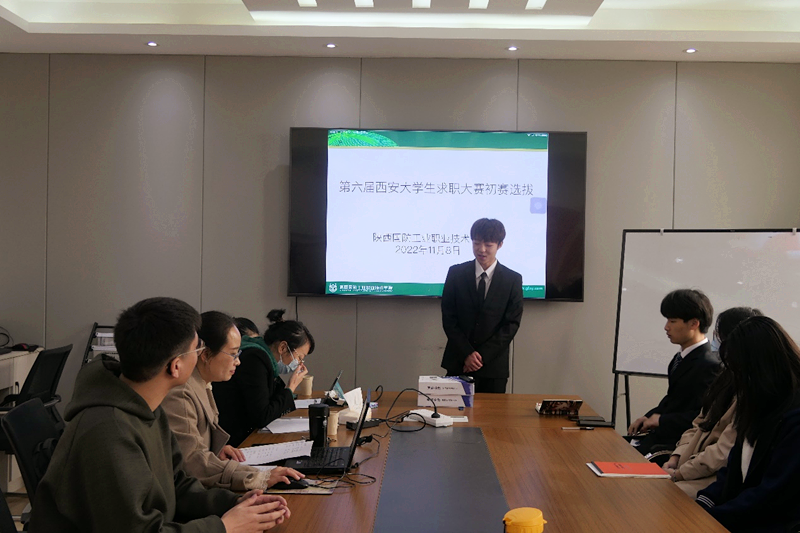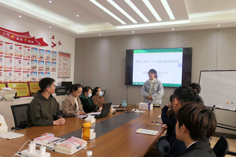 2022年11月8日下午,马克思主义学院成功举办了“第六届西安大学生求职大赛”初赛。 就业教研室专兼职老师对各分院推荐的30多名优秀选手,采用模拟面试大赛的方式:自我介绍+问答,对学生进行校内初赛,最终以下同学脱颖而出: