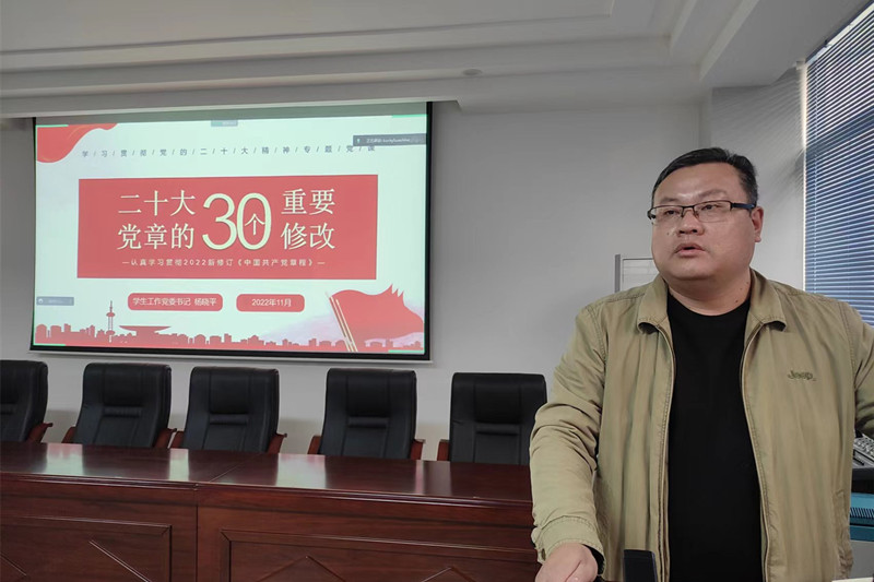 最后,新利体育官方网站党委书记杨晓平为全体党员讲授学习贯彻党的二十大精神专题党课《二十大党章的30个重要修改》,分别从中国共产党章程基本概述、党的二十大修改党章的重大意义、党的二十大关于党章(修正案)决议、二十大党章的30个重要修改等四个部分进行具体讲解,让全体党员深刻认识到党章修改是深入学习贯彻党的创新理论的需要,是贯彻党的二十大精神的需要。