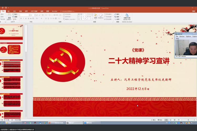 为深入贯彻学习党的二十大精神,提升我校师生严守党规,遵守党纪的自觉意识,12月8日下午,汽车工程学院党总支开展党的二十大精神学习暨廉洁教育专题党课,汽车工程学院师生100余人参加了此次学习。