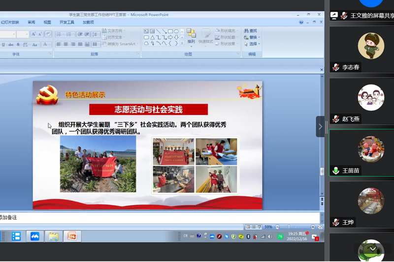 12月16日下午,经济管理学院党总支通过腾讯会议线上开展党支部书记抓党建述职大会,总支委员和各党支部书记参加了本次会议,会议由党总支书记王文雅主持。