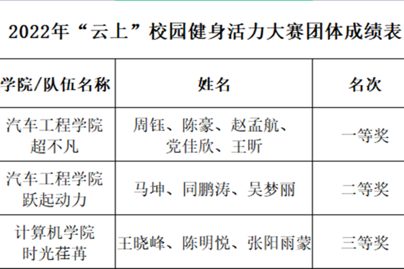 最终经过专业评委评选,汽车工程学院“超不凡”和“跃起动力”队荣获团体第一名和第二名;计算机学院“时光荏苒”队荣获团体第三名;人工智能学院李明亮等12名同学荣获名次奖。