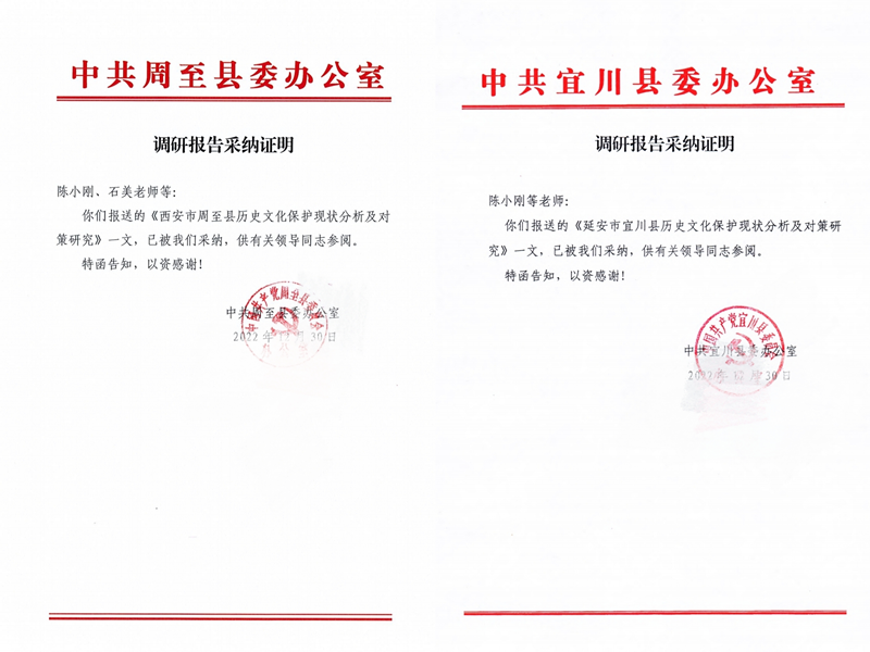 近期,我校马克思主义学院教师陈小刚联合陕西师范大学、长安大学等校内外科研团队深挖陕西县域历史文化价值,充分发挥科研团队优势,服务区域社会发展,研究取得了阶段性成果。科研团队足迹踏遍西安市鄠邑区、周至县,以及延安市宜川县,走访地方专家学者,开展历史文化实地调查,为地方经济社会发展建言献策。完成西安市鄠邑区、周至县,以及延安市宜川县历史文化现状分析及对策研究调研报告,被地方党委政府采纳,部分意见建议在相关工作中吸收,有助于推动地方文化事业繁荣发展。