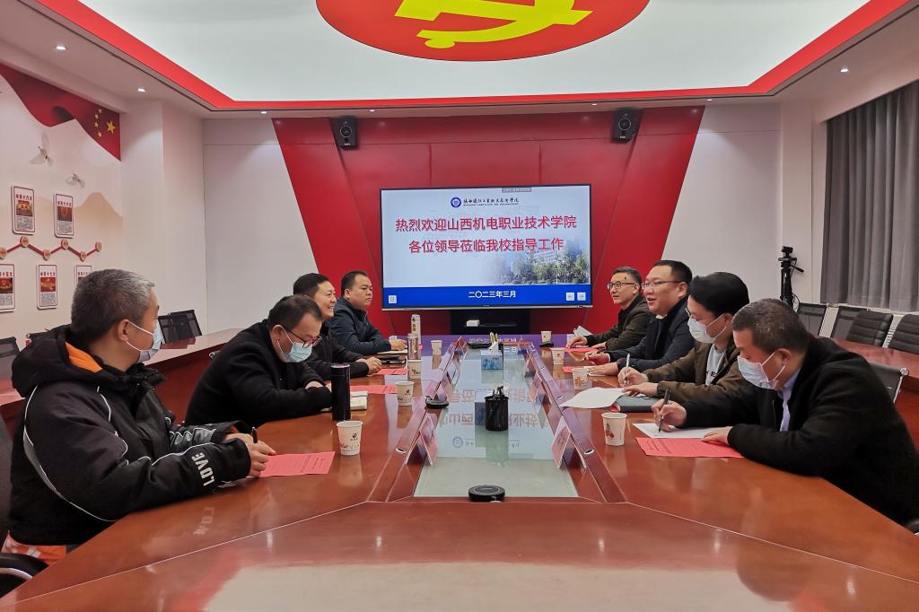 3月18日上午,山西机电职业技术学院数控工程系主任赵亮一行四人来我校交流学习,智能制造学院院长李俊涛、数控教研室主任赵小刚、数控加工实训中心主任周信安、智能制造实训中心主任潘文宏等参与交流会议。