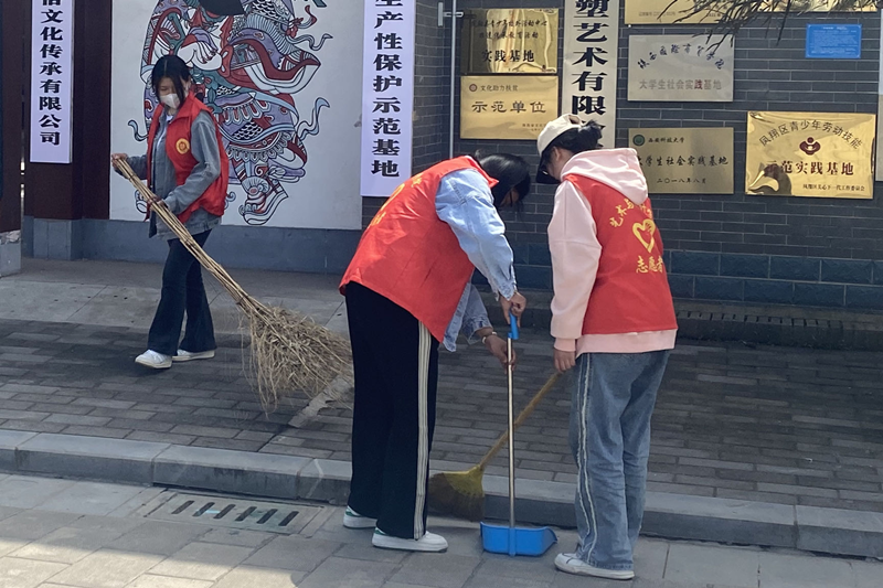 全体志愿者在宝鸡凤翔非物质文化遗产民俗文化园开展了“学习二十大永远跟党走青春志愿行”学雷锋志愿服务活动。活动中,志愿者们干劲十足、热情高涨,手持扫帚、铲子等清洁工具,对艺博园内的垃圾进行了仔细清理。当看着清理干净的园区和街道,志愿者们都露出了开心的笑容,他们不怕脏、不怕累,用实际行动诠释了雷锋精神的时代内涵。