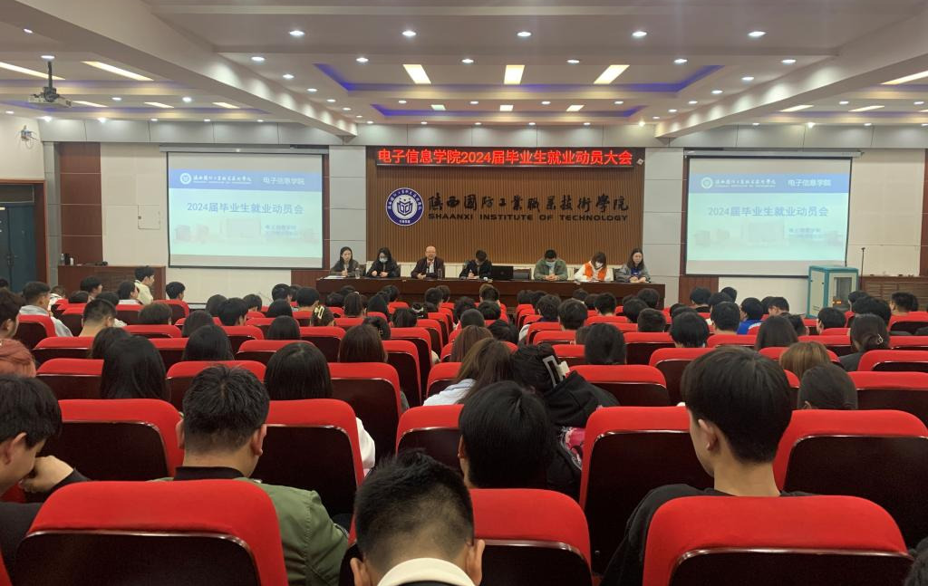 根据全省高校毕业生就业工作推进视频会议精神和学校关于毕业生就业工作要求,2023年3月30日晚,电子信息学院在教二报告厅召开2024届毕业生就业动员会。参加此次会议的有电子信息学院党总支书记赵鹏,学生科长董永辉,2024届毕业班辅导员,以及全体2024届毕业生。