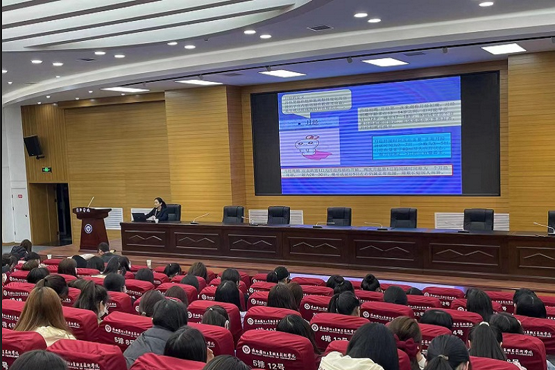 为了帮助女大学生树立正确的自我保护意识,培养高尚的情操,促进女生健康自信成长。2023年4月6日晚上7:30计算机与软件学院在教四学术报告厅举办了“珍爱青春 不负韶华”的女生专题讲座。计算机与软件学院专兼职辅导员和近300名女生参加了此次讲座,本次讲座特邀鄠邑区惠安医院的副主任医师蒋红霞讲授。