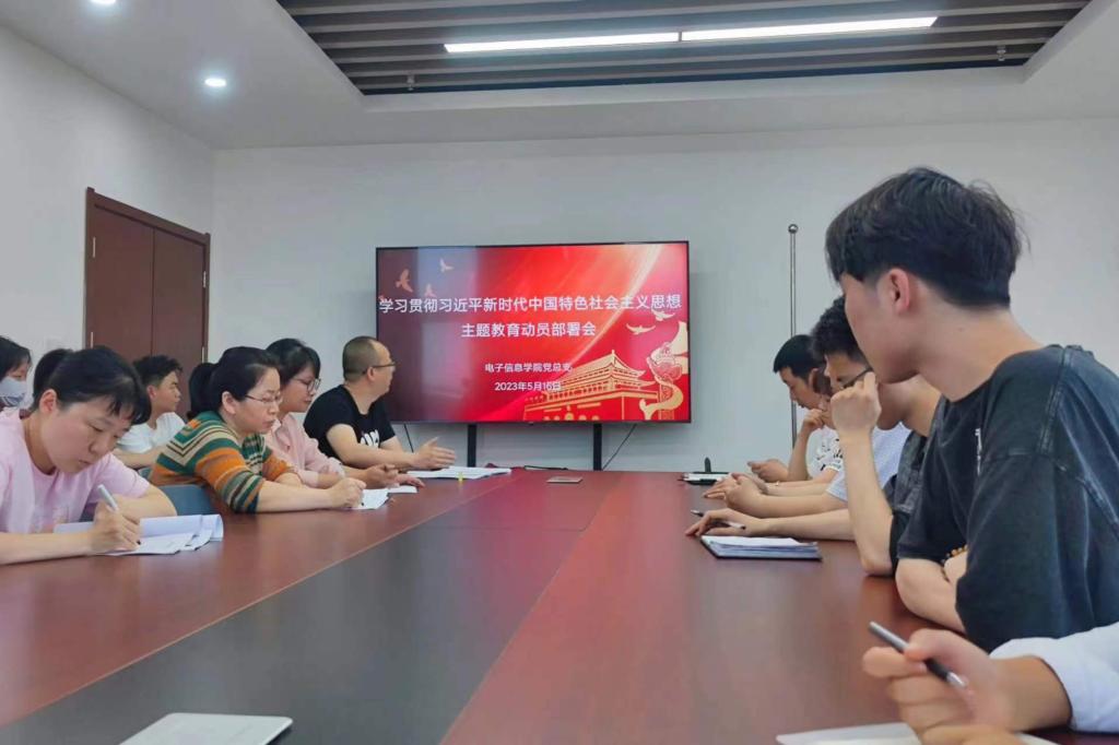 2023年5月16日,电子信息学院党总支在博远楼602召开了“学习贯彻习近平新时代中国特色社会主义思想主题教育动员部署会”。会议由党总支书记赵鹏主持,学院党总支教师党员和学生党员参加会议。会上,赵鹏宣读了电子信息学院党总支关于“学习贯彻习近平新时代中国特色社会主义思想主题教育”实施方案。