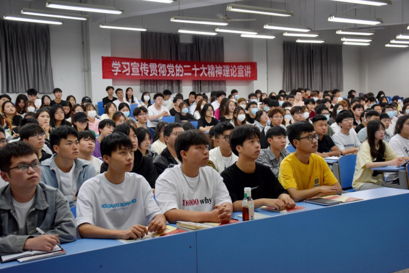 “高质量发展是全面建设社会主义现代化国家的首要任务。没有坚实的物质技术基础,就不可能全面建成社会主义现代化强国。”5月22日下午,全省高校学习宣传贯彻“党的二十大精神”大学生宣讲队成员胡可在我校北区3号教学楼131教室,以“高质量发展‘高’在哪儿”为主题进行宣讲,来自机械工程学院、计算机与软件学院、经济管理学院、电子信息学院、艺术与设计学院的280名学生代表参加了宣讲会。