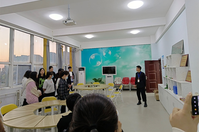 活动中,心理健康教育中心的学工助理们热情地接待了大家,带领同学们依次参观了团队沙盘室、情绪宣泄室、心理测评室、音乐放松室等各功能室,并对各功能室的主要用途及使用方法进行了详细讲解,对心理中心各位心理咨询师师资情况和预约咨询规则进行重点介绍。期间,同学们提出了很多问题,助理们也一一进行了解答,整个过程气氛欢快。最后,同学们亲身体验了中心的各类专业仪器设施,通过尝试了沙盘室装置,躺在沙发上听音乐放松身心等体验,真正体会到了调节情绪、释放压力的效果,对大学生心理健康咨询有了更直观、更深入的认识。