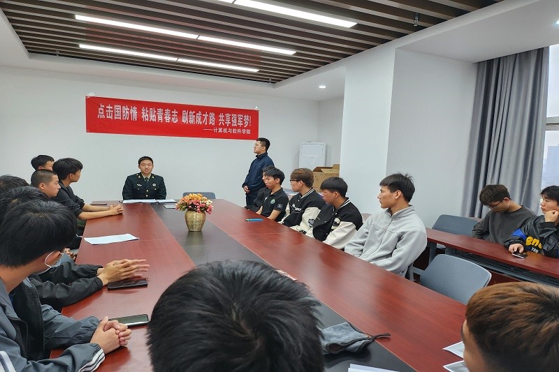 为深入贯彻习近平强军思想,自觉担负助力国防军队建设的政治责任和历史使命,全力推动《兵役法》《征兵工作条例》在学校创造性落实,落实立德树人的根本任务,5月26日计算机与软件学院开展“点击国防情 粘贴青春志 刷新成才路 共享强军梦”征兵主题宣传活动,特邀退役学生姚佳佳以及预征班班长李志凯、分院30余名有入伍意向的学生参加了此次动员会,活动由学生科段聪影老师主持。