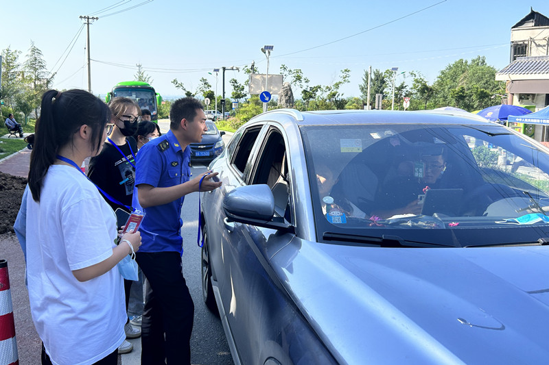 最后,学生党员组成交通志愿者,帮助工作人员做好车辆交通疏导、安全提醒等工作。