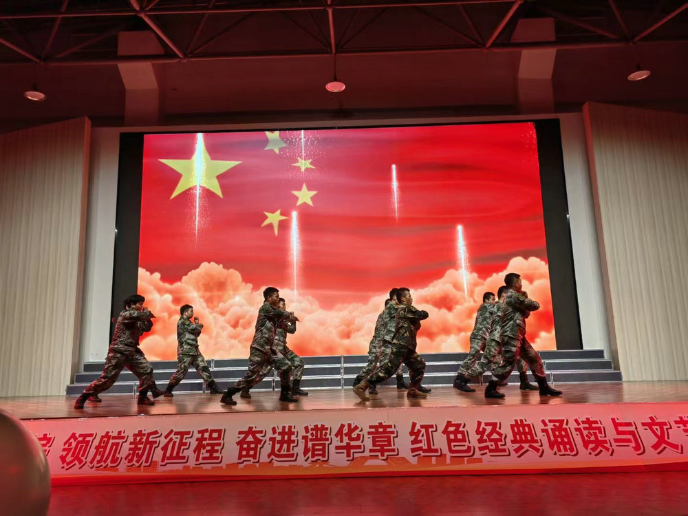 经过前期精心筹备,晚会在热烈的舞蹈中拉开序幕,学生们以欢快的舞步瞬间点燃了观众们的热情,现场掌声雷鸣。红色经典《一九七五六五三》《我的祖国》《月光下的中国》《少年中国说》等朗诵节目,表演者以铿锵的台词和深深的情感,带领观众重温那段峥嵘岁月,带领观众感受着党的光辉历程,充分表达出青年们的爱国情怀和决心振兴祖国的壮志,他们充满激情的演讲令在场师生深深动容。晚会中,还有《江南》《写给黄淮》《枫》等歌曲,优美的歌声动人的旋律,展现出青年们的青春与活力。《屈原颂生死交响》《素锦时年》等节目也将中国传统经典文化得以生动展现。最后,由军魂国护预征班的学员们带来的节目《军魂本色》,将整场气氛推向高潮,以其完美的表演演绎了我华夏之军魂,铁骨铮铮,气贯长虹。