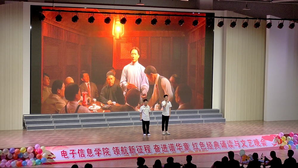 为深入开展学习贯彻习近平新时代中国特色社会主义思想主题教育,推进党史学习教育常态化走深走实,大力弘扬伟大建党精神,以红色文化感召新时代青年奋勇向前,5月31日晚,由电子信息学院学生党支部筹办的“领航新征程 奋进普华章”红色经典诵读与文艺晚会在我校博远楼小剧场圆满举行。电子信息学院党总支书记赵鹏、电子信息学院院长邱燕、学生科工作人员、全体专兼职辅导员及400余名学生代表出席本次活动。晚会师生欢聚一堂,现场气氛热烈。