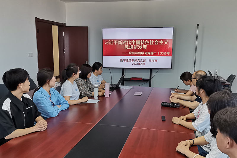 为全面学习贯彻党的二十大精神,深入开展学习贯彻习近平新时代中国特色社会主义思想主题教育,6月13日下午,电子信息学院数字通信教师党支部书记王海梅讲授“习近平新时代中国特色社会主义思想新发展——全面准确学习党的二十大精神”专题党课,支部党员教师、入党积极分子、学生代表在博远楼东602会议室参加学习。