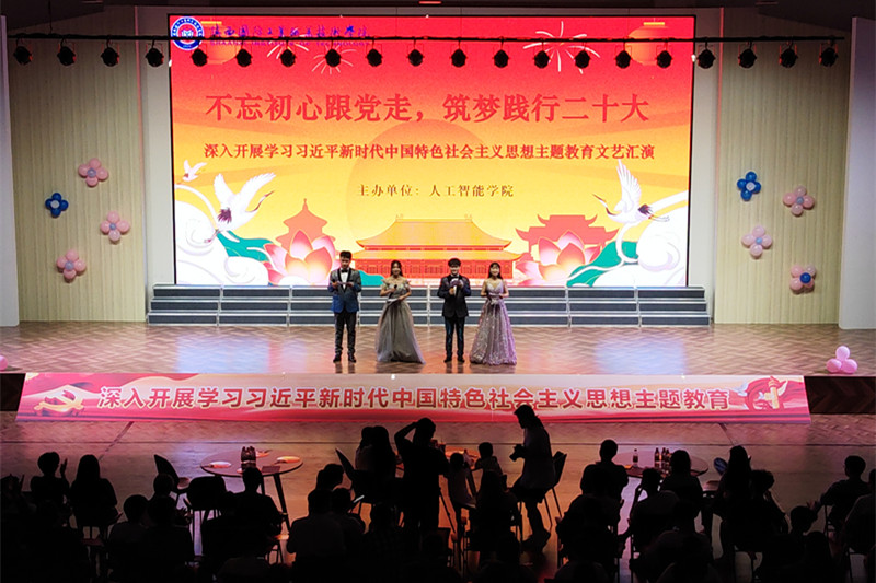 为深入开展学习贯彻习近平新时代中国特色社会主义思想主题教育,全面贯彻落实党的二十大精神,献礼建党102周年,引领师生重温党的光辉历史,充分激发青年学生们的爱党爱国情怀,形成扎实推进主题教育的良好氛围。6月20日晚上,人工智能学院在博远楼小剧场举办“不忘初心跟党走 筑梦践行二十大”红色经典文艺汇演。人工智能学院学生科科长刘沛静、团总支书记贾媛媛、专兼职辅导员以及200余名学生代表出席活动。