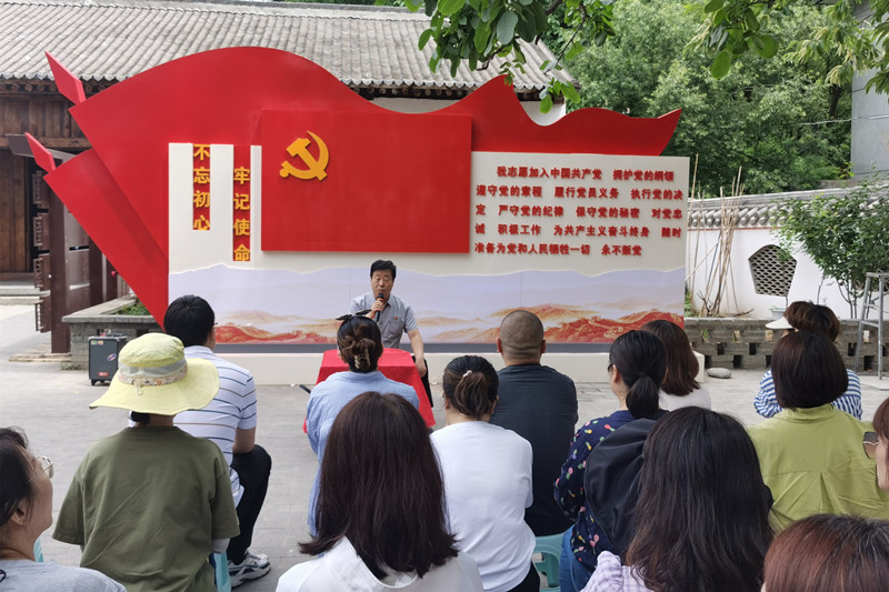 在纪念馆前,党总支书记王文雅带领全体党员面向党旗高举右手,重温入党誓词。在讲解员的带领下,大家仔细参观了灞源革命纪念馆,珍贵的历史照片、文献史料和实物,倾听了革命先烈“流峪牛犊沟口伏击战”“灞龙庙围歼战”“厚子镇反击战”的感人事迹和奋斗历史,深切感受到革命先辈英勇无畏、不怕牺牲、不屈不挠的战斗精神,党员的历史责任感、使命感油然而生,参观完纪念馆,特邀请蓝田县党校教师为全体党员上了一堂生动的党课。