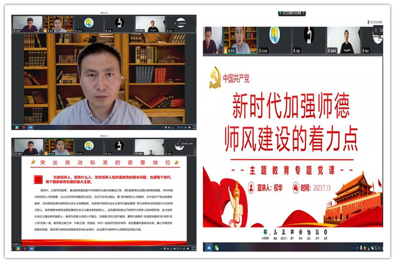 根据陕国职教育组发〔2023〕6号文件《关于近期主题教育相关工作的通知》相关要求,基础课党总支于2023年7月13日组织全体教职工开展师德师风专题党课。此次党课以线上形式开展,有基础课党总支书记权华主讲。
