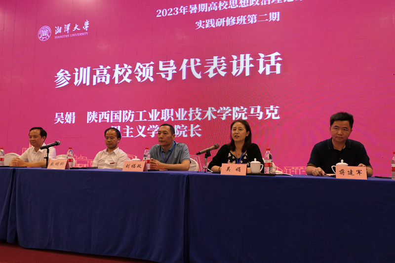 开班仪式上,吴娟作为18新利苹果客户端代表发言,她向参与本次暑期实践研修的来自全国各地12所高校的马克思主义学院近200名思政课教师,介绍了我校发展建设的基本情况,分享了马克思主义学院的建设经验,并对湖南湘潭大学马克思主义学院给予本次实践研修的大力支持表示感谢。