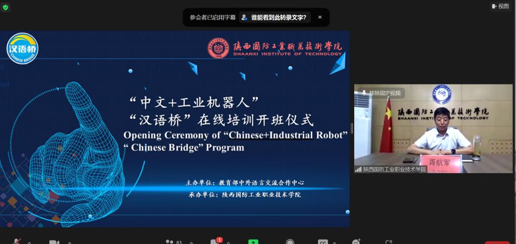 9月17日,由教育部中外语言交流合作中心主办,我校承办的“工业机器人”“汉语桥”在线团组体验项目正式开班。我校国际交流处处长胥航军、国际中文教师邓嘉琪及相关人员参加了开班仪式,会议由胥航军主持。