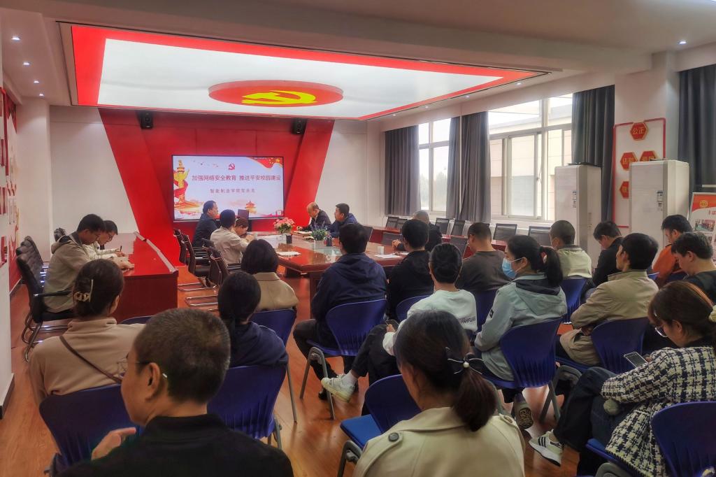 为进一步加强教职工网络安全教育,推进分院平安校园建设工作,10月12日下午,智能制造学院在致远楼305组织召开网络安全教育专题学习活动,全体教职工参加学习,活动由智能制造学院党总支书记白福民主持。