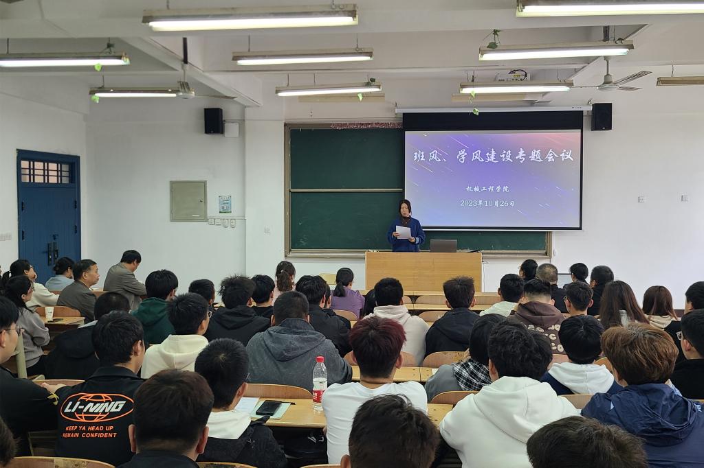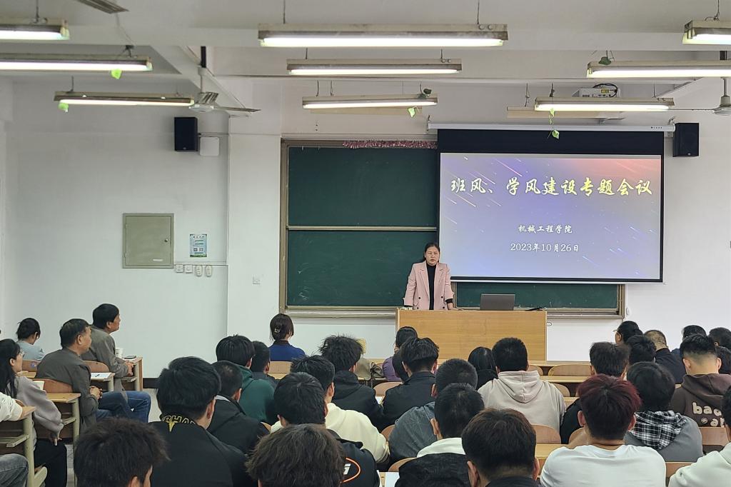 最后,机械工程学院院长修学强指出,要提高对班风、学风、教风建设重要性的认识,形成全员参与的良好氛围。要分工协作、各司其职,共同抓好各项建设工作。学生自身要加强学习,积极参与班级各项活动;班委要围绕怎么抓好班级班风、学风想办法、出主意、用实招;教研室要加强教风建设,深化“三教”改革,加强对课堂教学的过程性考核;辅导员老师要定期关注班级情况,重点跟进学业后进生、加强与授课教师的沟通和联系;学院将进一步加强顶层设计,教学、学工联动,共同推进班风、学风、教风建设不断提升。