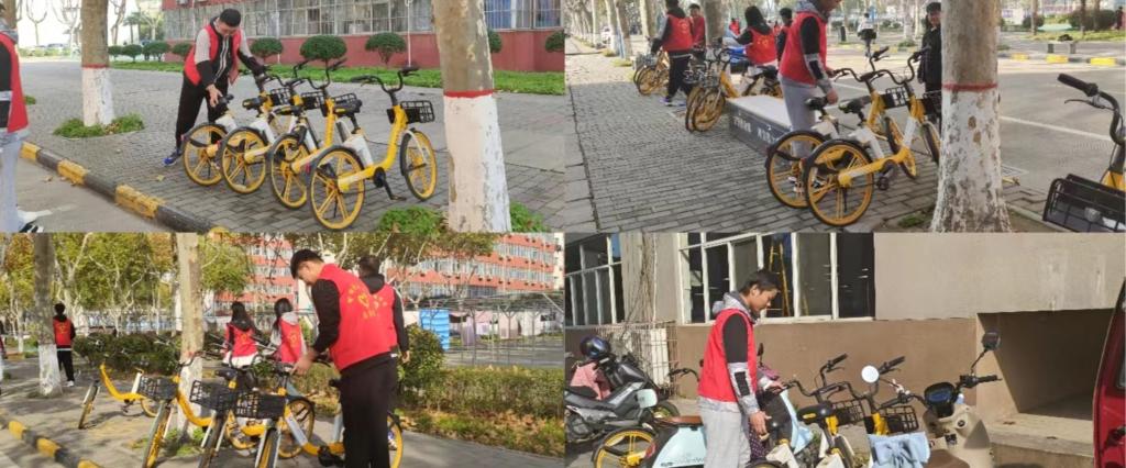 为了保障校园安全,提高同学们规范摆放共享单车的意识,智能制造学院志愿者小队于2023年11月8日上午在校园内进行“违规摆放危险大,安全规范记心间”志愿服务活动。