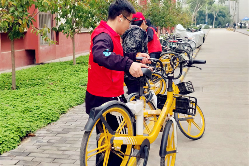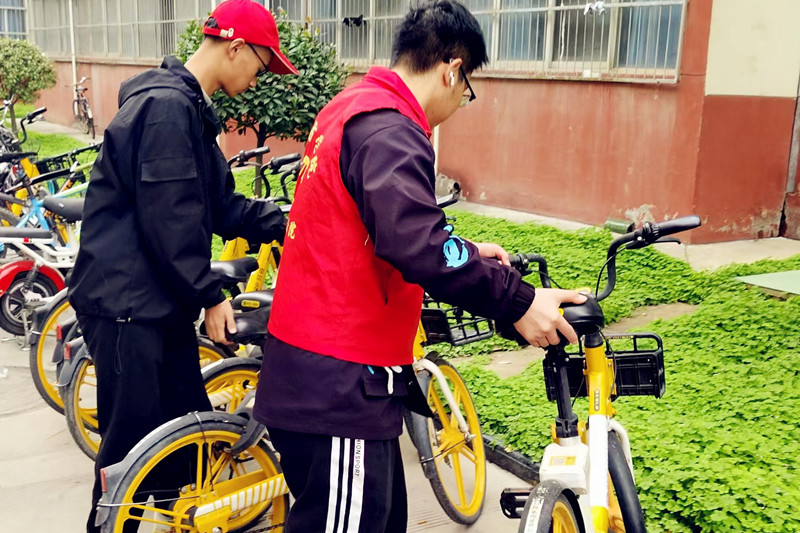 活动伊始,志愿者们在3号教学楼正门集合完毕,大家穿上志愿服装,前往学校附近共享单车停放区域,把散乱、倒置的单车统一整理到停车点并摆放整齐。活动过程中,同学们们认真负责,脸上都洋溢着喜悦的表情。