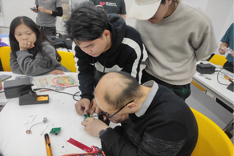 在此次技能培训中,首先主讲老师王古森对参加培训的学生及带队教师表示热烈欢迎。其次对电子产品焊接与装配相关知识进行了讲解,随后在学生进行电子产品制作过程中,王古森和李婉两位老师为学生展示了焊接、组装、调试等技能,实现了高技能人才交流切磋。在此期间留学生表现出对电子产品制作的极大兴趣,现场反应良好,气氛活跃。