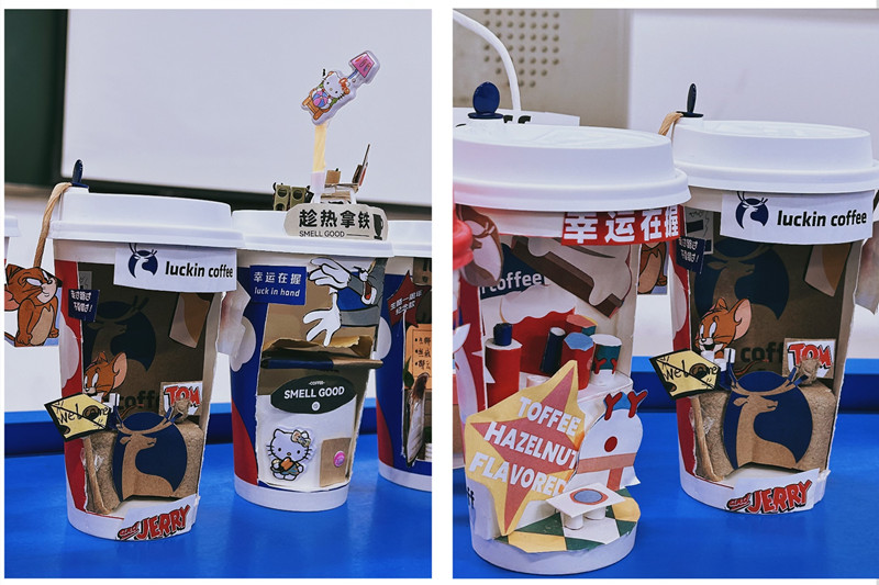 劳动教育课上,王老师为每个班级规定工艺实践内容,同学们在课堂上将宿舍整理出来的环保物料、废物利用进行创意制作,通过赋予想象力和创造力的表现方式,将杂物变废为宝,制作出彰显生活情怀的一件件独特作品。