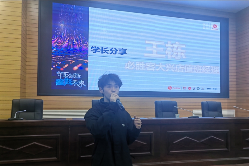 最后,目前就职于百胜的学生代表,经济管理学院人力3211班学生王栋和大家进行了工作内容、经验和晋升渠道等分享和交流。分享过程中,同学们反应积极,气氛活跃,纷纷向学长请教咨询。