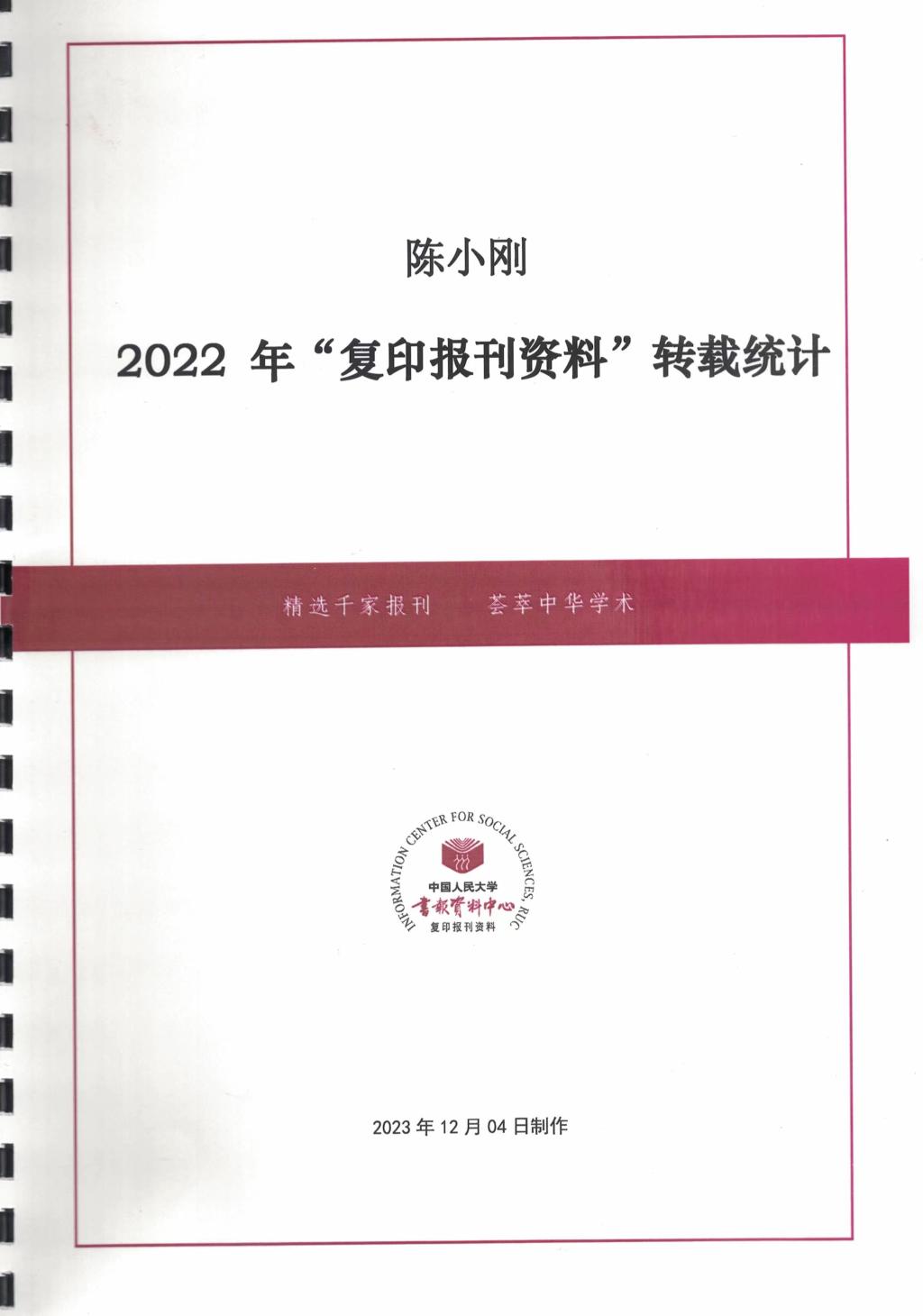 我校党委统战部陈小刚副教授撰写的3篇统战领域学术论文被中国人民大学书报资料中心复印报刊资料转载,12月4日收到了相关证明。3篇论文分别发表于《宗教学研究》《中国社会科学报》(理论版)《西藏民族大学学报》(哲学社会科学版)等权威核心期刊。