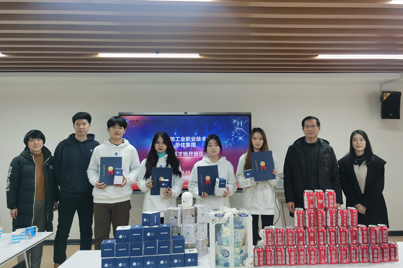 会上,首先王珊珊对出席本次开班仪式的领导、嘉宾和同学们的到来表示热烈地欢迎,同时也感谢企业对经济管理学院专业建设给予的帮助和指导。接着王文雅对订单班学生提出三点要求,一是做好双重身份,即做好学生身份和华住准员工身份;二是既要遵守学校的教育教学学生管理制度,又要遵守华住集团相关管理纪律;三是希望大家在企业工作中要始终保持认真、刻苦的学习态度,充分展现国防学子风采。接着李怡卉对“华住英才班”后续班级管理、学习培训计划、学生角色转换、学分认定等规章制度进行了介绍。接着严长远、王文雅、刘浩和李怡卉一起为“华住英才班”学生颁发录取通知书和纪念品。
