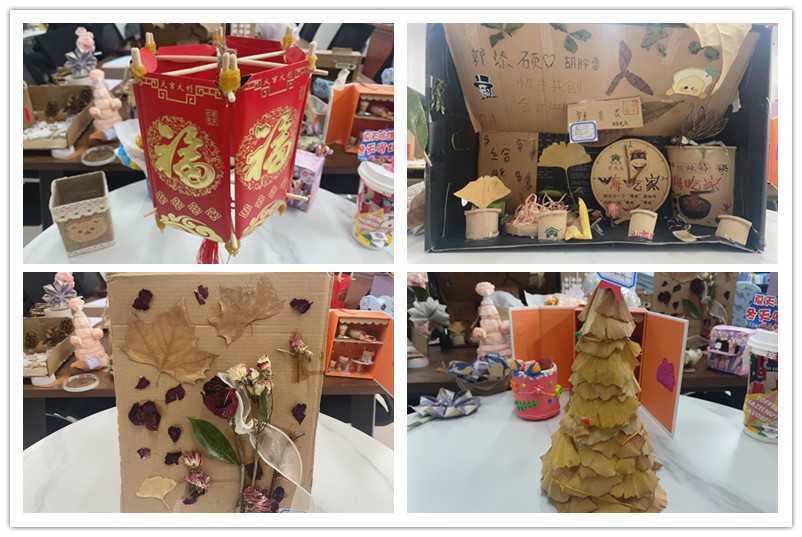 本次活动为手工制作特长和爱好的同学提供一个展示自我的舞台,同学们用一双巧手,大展身手,发挥想象力获得了别致的“宝物”,将环保理念融入到自己的作品中,利用废弃塑料瓶、纸壳,折纸和木条等废弃物品,粘上银杏叶、折纸、花瓣等,制作成精美的装饰品、微型场景、饮水机等。通过这次活动,同学们不仅学会了将生活中的废弃物进行再利用,还学会了如何将环保理念融入到日常生活中。