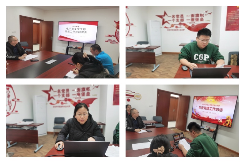 首先数字通信教师党支部书记王海梅从2023年主要开展工作、取得成效、存在问题与下一步举措三个方面进行了汇报。其次学生党支部从学习教育常态化制度化,强化理论武装;学习党史,筑牢理想;发挥党员先锋作用;持续推进支部党建标准化规范化建设;持续强化作风建设五个方面进行了汇报。最后是电子装备教师党支部书记屈宝鹏主要从理论学习工作、落实主体责任、基层党建工作、强化政治引领、意识形态工作、推进从严治党六个方面进行了汇报。