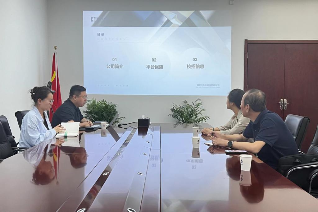 西安科佳光电科技有限公司总经理助理曹渤岩对张双琦一行到访表示欢迎,曹助理从企业的发展历程、平台优势、人才培养、薪资待遇、晋升通道等方面进行了详细的介绍,同时对我校毕业生在企业的表现给予了充分肯定,张双琦介绍了学院的专业设置、办学特色,感谢企业对学校办学事业的关心和支持。