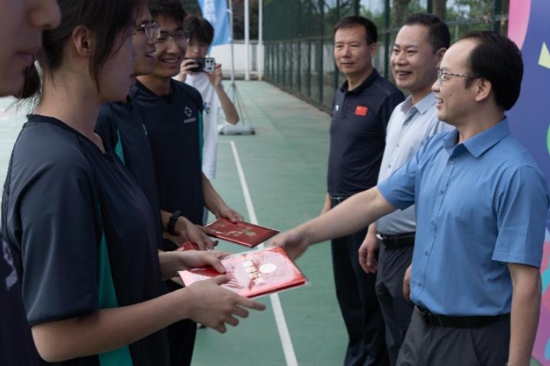 党委新利体育官方网站部副部长王牛俊为优秀裁判员颁发证书