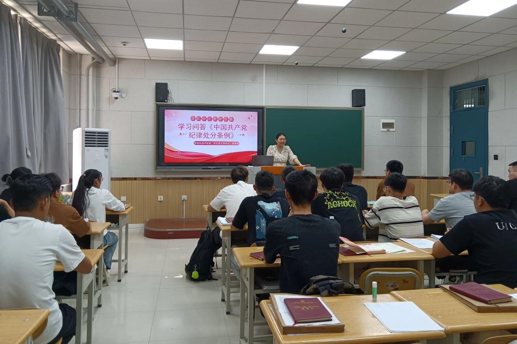 活动首先由党支部书记樊英鸽领学《中国共产党纪律处分条例》。她向学生党员分享要搞清楚党的纪律规矩是什么,弄明白能干什么,不能干什么,要把学习融入日常,抓在经常。