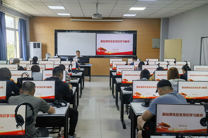 在全面从严治党不断深入推进的大背景下,为进一步增强党员干部的纪律意识和规矩意识,筑牢防腐拒变的思想防线,2024 年 6 月 18 日,基础课党总支在 5-604开展了党纪学习教育,基础课党总支全体党员积极参与,此次党纪学习教育由基础课党总支书记权华主持。