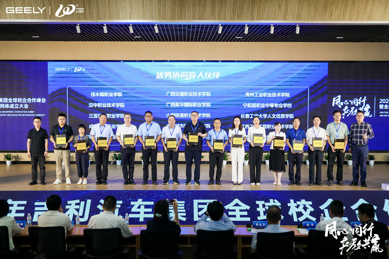 今年的峰会以“同心同行,产教共赢”为主题,旨在深化职普融通、科教融汇、产教融合,推动产、学、研、用协同发展,加快构建现代职业教育体系,促进行业技能人才培养。会上,学院荣获“2023 年度吉利汽车校企合作优秀协同育人伙伴”奖项,这一荣誉是对学院长期以来在校企合作领域辛勤耕耘和不懈努力的高度认可,也是对学院与吉利汽车携手共进、协同育人成果的最好证明。