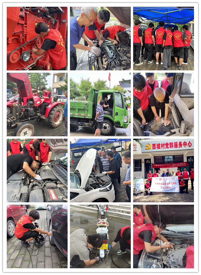 为积极落实我校2024年暑期三下乡社会实践工作要求,将专业知识与实践相结合,为乡村地区提供车辆维修技术服务,同时培养大学生的社会责任感和实践能力,2024年7月10-7月16日,由数十名汽车工程学院师生组成的车辆维修技术服务实践团,带着专业工具和设备,走进了鄠邑区玉蝉街办伦公村,甘亭街办西坡村,甘亭街办马营村。在这里,他们开展了为期一周的“三下乡”社会实践活动,为当地村民提供车辆免费检测、保养和维修服务。
