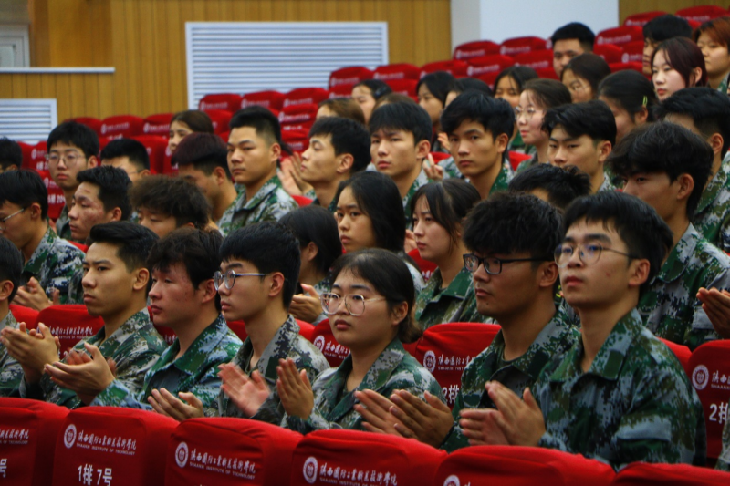 最后主持人胡震结合报告会内容向学生们发起倡议,倡议同学们以一等功臣刘亚玲为榜样,将英雄的精神内化于心、外化于行,努力学习科学文化知识,增强自身的综合素质,将来积极的投身到我国的国防建设中去。