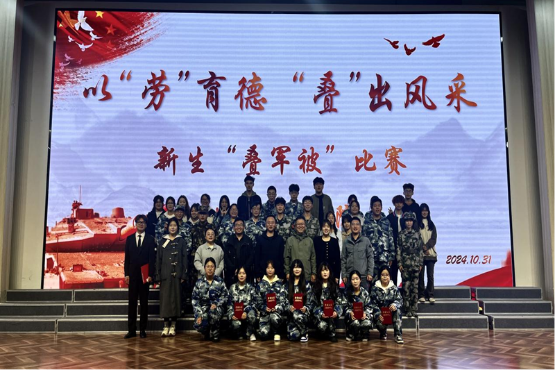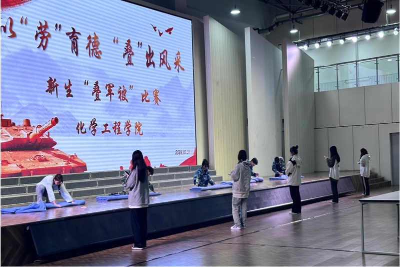 为全面贯彻党的教育方针,落实立德树人根本任务,培养德智体美劳全面发展的社会主义建设者和接班人,检验学生军训成果,10日31日下午,化学工程学院开展了以“以‘劳’育德 ‘叠’出风采”为主题的新生“叠军被”大赛。化工学院党总支书记孟龙、学生科长李斌、化工学院全体辅导员老师和新生军训学员参加了本次活动。