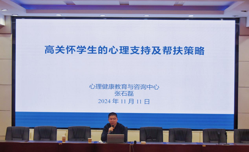 11月11日下午,学工部邀请长安大学心理中心副主任张石磊在树人报告厅为我校全体辅导员开展心理健康专题讲座,本次心理健康讲座的主题是“高关怀学生的心理支持及帮扶策略”。我校全体专兼职辅导及心理委员共计150余人参加了本次讲座。